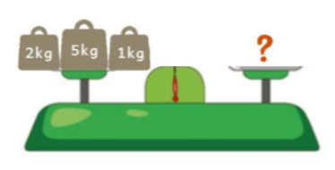 Cho một cái cân đĩa và chỉ có 3 quả cân, mỗi quả có trọng lượng lần lượt là 1kg, 2kg, 5kg (như hình vẽ). Muốn có được 30kg gạo thì cần ít nhất mấy lần cân?