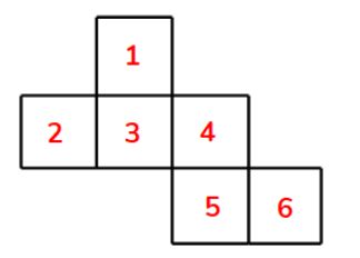 Hỏi trên khối lập phương, số nào nằm trên mặt đối diện với mặt chứa số 6?