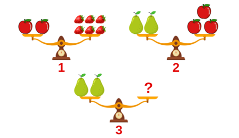 Cần …… quả dâu để cân thứ 3 cân bằng.