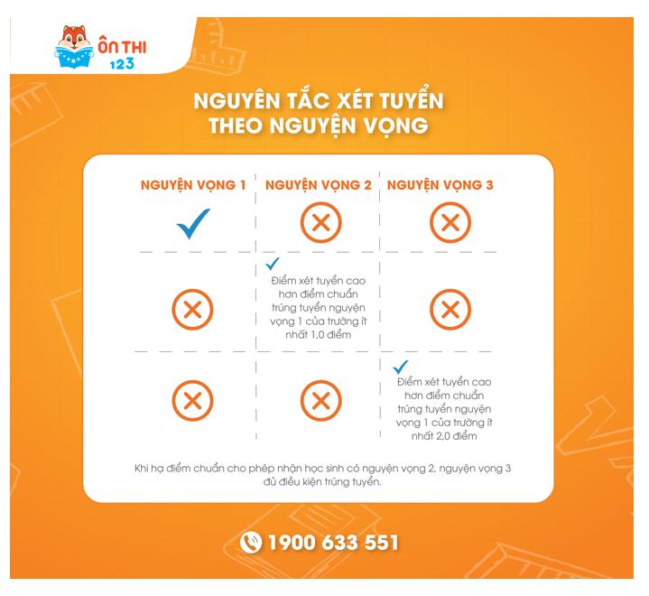 Các nguyện vọng nên sắp xếp theo thứ tự ưu tiên nguyện vọng `1, 2` và `3`. Bởi nếu thí sinh đỗ nguyện vọng được ưu tiên cao hơn sẽ không được xét tiếp các nguyện vọng kế tiếp. Vì vậy các con hãy để ngôi trường mình mong muốn nhất là nguyện vọng `1` nhé!