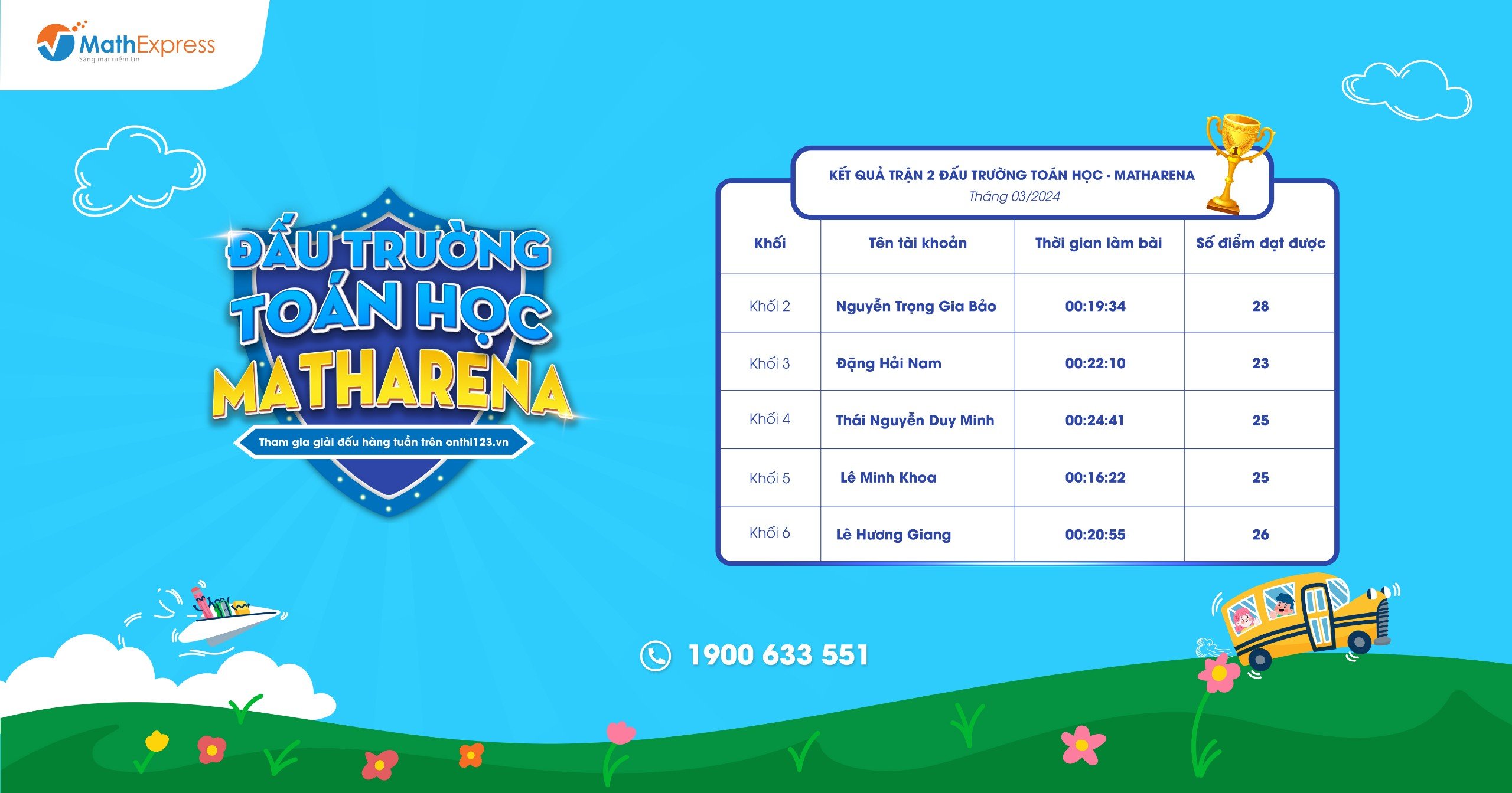 MathExpress xin chúc mừng các em đã vượt qua hàng chục đối thủ và chinh phục thành công các thử thách ở “chặng đua” lần này để ghi danh bảng vàng.