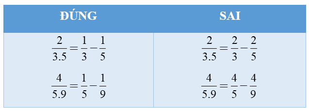 Ví dụ: `1/2.3=1/2 - 1/3;2/3.5=1/3-1/5;4/5.9=1/5-1/9`